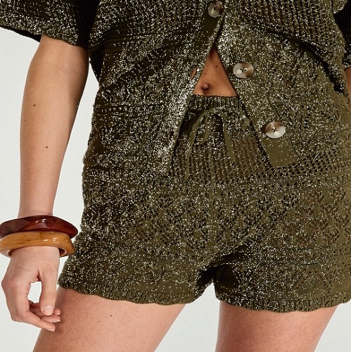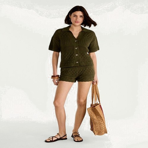 Pure Cotton Crochet Look Co-ord Shorts in Green