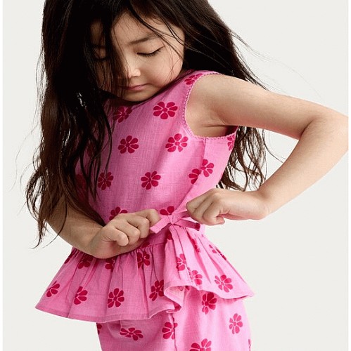 F&F Girls 2-Piece Pure Cotton Floral Print Vest and Trousers Set in Pink