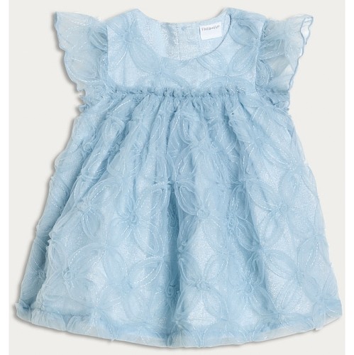 Textured Floral Embroidered Dress in Blue