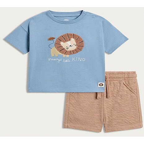 2-Piece Pure Cotton Mummy's Little King T-Shirt and Shorts Set in Teal