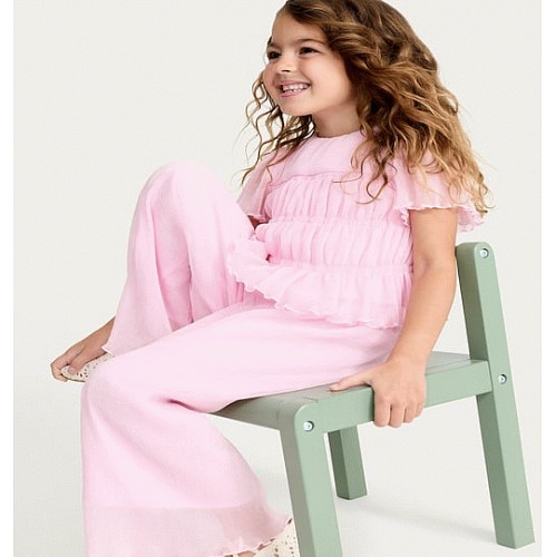F&F Girls 2-Piece Frill Trim Top and Trousers Set in Pink