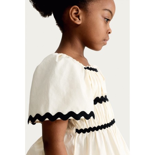 F&F Girls 2-Piece Pure Cotton Contrast Trim Top and Trousers Set in Cream