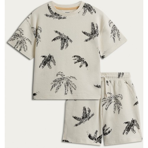 F&F Boys 2-Piece Pure Cotton Palm Print T-Shirt and Shorts Set in Cream