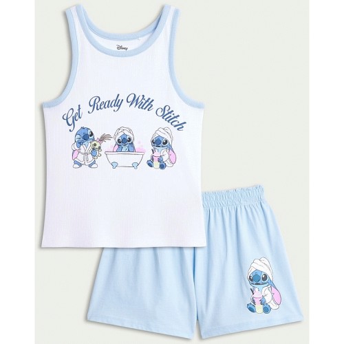 Disney Stitch 2-Piece Pure Cotton Vest and Shorts Pyjama Set in Multi
