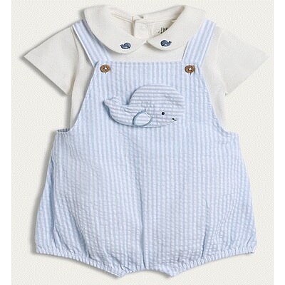 2-Piece Pure Cotton Dungarees and Striped Bodysuit Set in Blue
