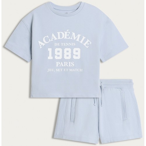 F&F Girls 2-Piece Pure Cotton Slogan T-Shirt and Shorts Set in Blue