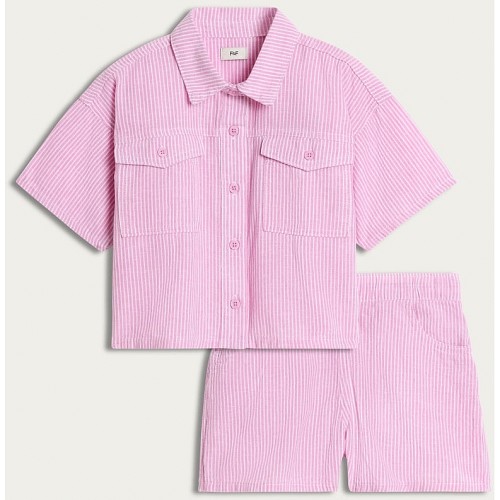 F&F Girls 2-Piece Cotton Rich Striped Shirt and Shorts Set in Pink
