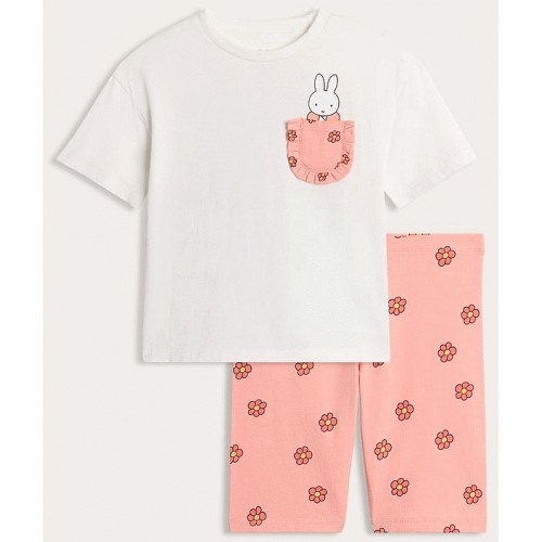 Miffy 2-Piece Floral Pocket T-Shirt and Cycling Shorts Set in Multi Orange