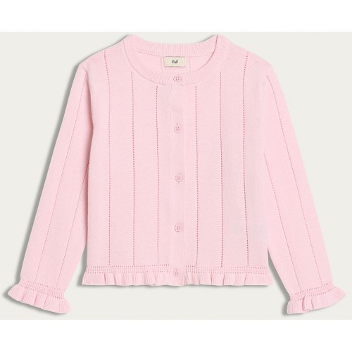 F&F Girls Pure Cotton Pointelle Frill Trim Cardigan in Pink