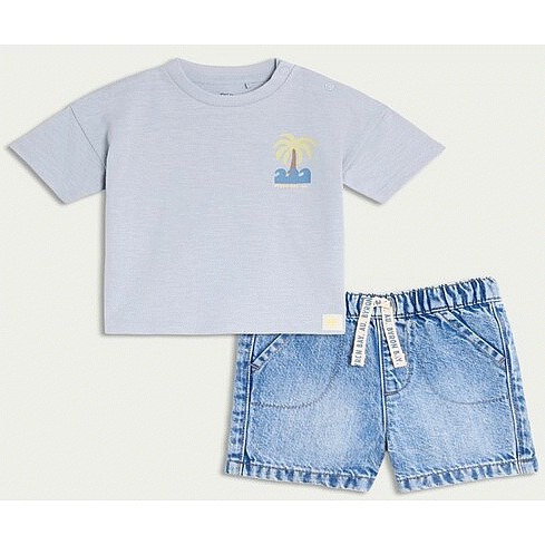 2-Piece Pure Cotton T-Shirt and Denim Shorts Set in Blue