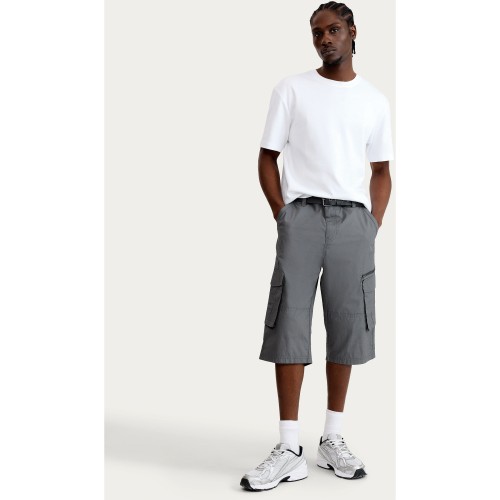 2-Piece Pure Cotton Ribbed T-Shirt and Cargo Shorts Set in Neutral