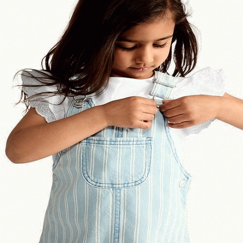 F&F Girls 2-Piece Pure Cotton Striped Pinafore and T-Shirt Set in Blue