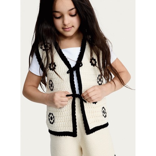 2-Piece Pure Cotton Knitted Embroidered Vest and Shorts Set in Cream