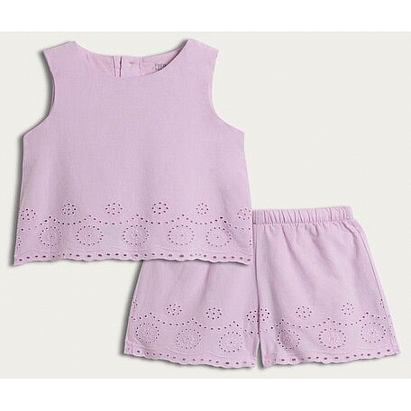 2-Piece Pure Cotton Broderie Vest and Shorts Set in Lilac