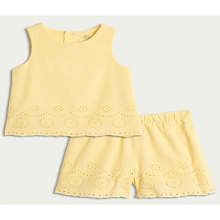 2-Piece Pure Cotton Broderie Vest and Shorts Set in Yellow