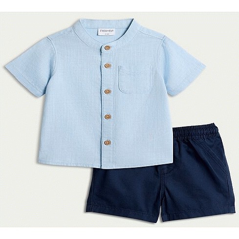2-Piece Pure Cotton Shirt and Shorts Set in Blue