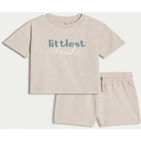 2-Piece Pure Cotton Littlest Dude T-Shirt and Shorts Set in Tan