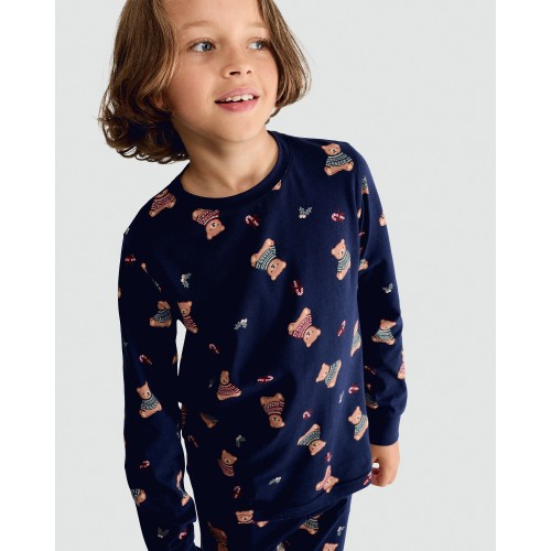 Unisex Pure Cotton Teddy Bear Print Matching Family Christmas Pyjamas in Multi