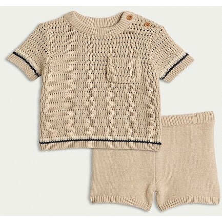 2-Piece Pure Cotton Crochet Top and Shorts Set in Stone