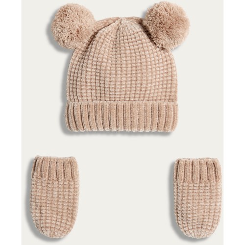 Baby 2-Piece Pom Pom Hat and Mittens Set in Neutral
