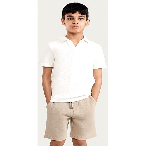 F&F Boys 2-Piece Cotton Rich Textured Polo Shirt and Shorts Set in Cream