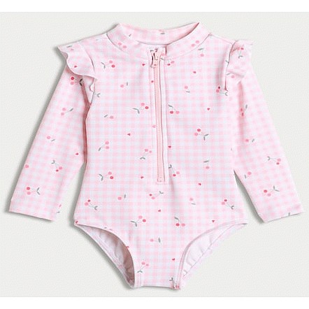 F&F Baby Gingham Cherry Print Long Sleeved Swimsuit in Pink