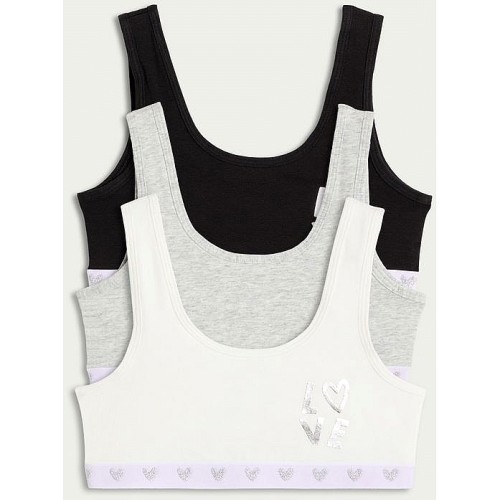 Girls 3-Pack Cotton Rich Love Print Crop Tops in Black