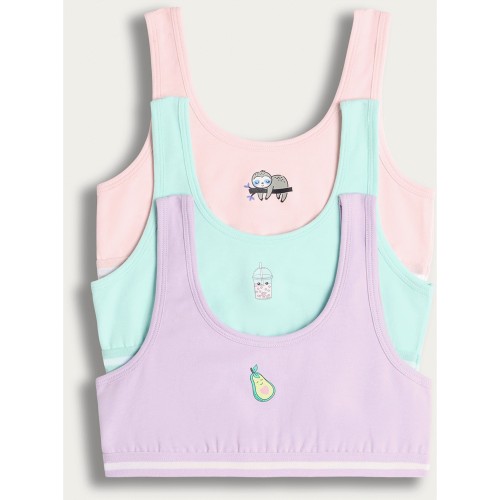 Girls 3-Pack Cotton Rich Printed Crop Tops in Multi