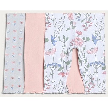 3-Pack Cotton Rich Floral Ribbed Leggings in Pink
