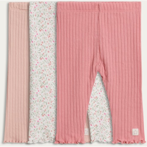 3-Pack Cotton Rich Floral Ribbed Leggings in Pink