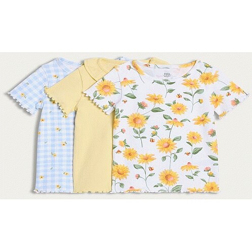 3-Pack Cotton Rich Ribbed Sunflower Print T-Shirts in Yellow