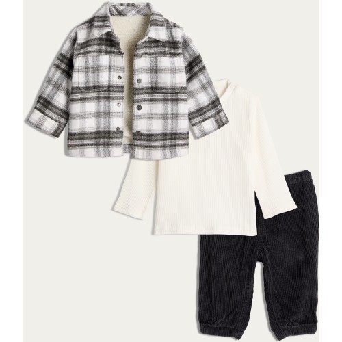 F&F Baby 3-Pack Cotton Rich Jacket Top and Trousers Set in Tan