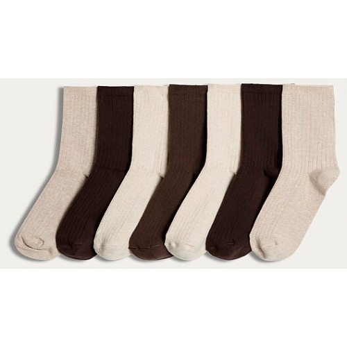 7-Pack Cotton Rich Ribbed Ankle Socks in Brown