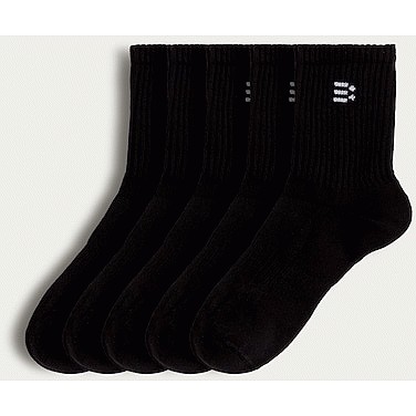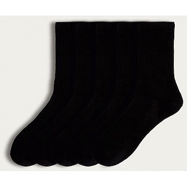 Active 5-Pack Cotton Rich Ribbed Ankle Socks in Black