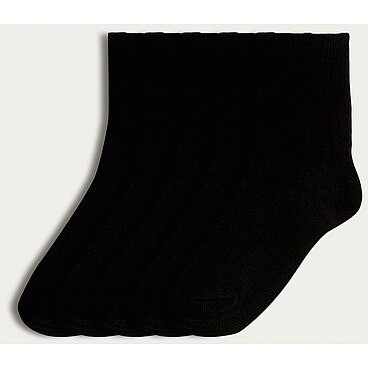 5-Pack Cotton Rich Ribbed Sports Ankle Socks in Black