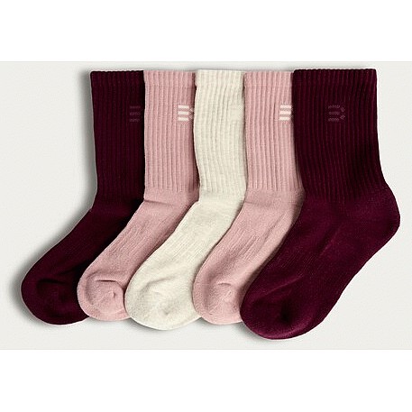 Active 5-Pack Cotton Rich Ribbed Ankle Socks in Burgundy