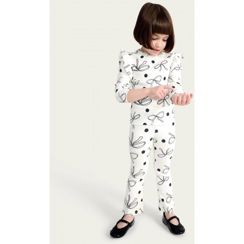 F&F Girls 2-Pack Cotton Rich Ribbed Flared Leggings in Multi Black White