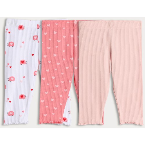 3-Pack Cotton Rich Ribbed Leggings in Pink