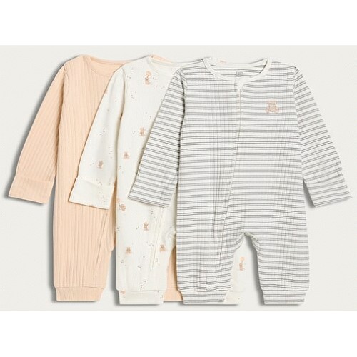 3-Pack Pure Cotton Long Sleeved Sleepsuits in Multi
