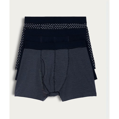 3-Pack Cotton Rich Geometric and Striped Pattern Trunks in Navy
