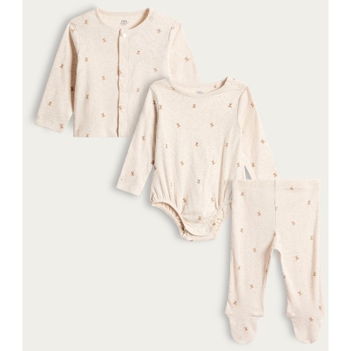3-Pack Cotton Rich Teddy Print Set in Neutral