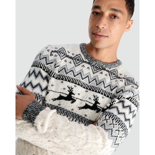 Knitted Reindeer Fair Isle Pattern Jumper in Neutral