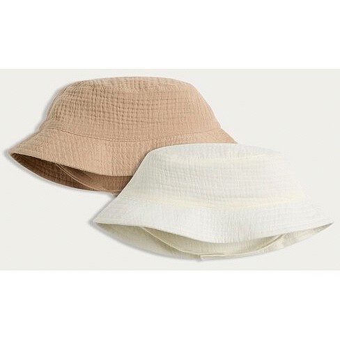 Baby 2-Pack Pure Cotton Textured Bucket Hats in Neutral
