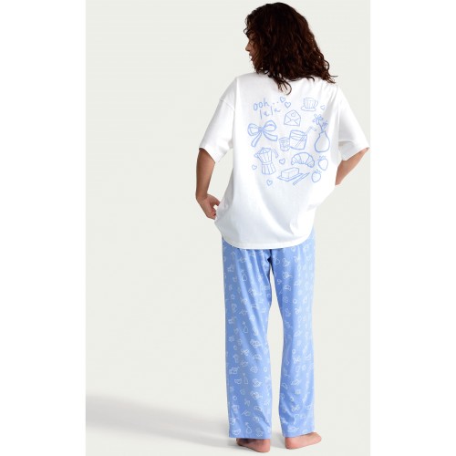 Pure Cotton Breakfast Print Pyjama T-Shirt in White