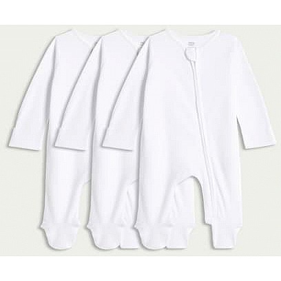 3-Pack Pure Cotton Long Sleeved Sleepsuits in White