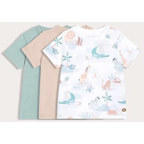 3-Pack Pure Cotton Crinkle Safari Animal Print T-Shirts in Multi White