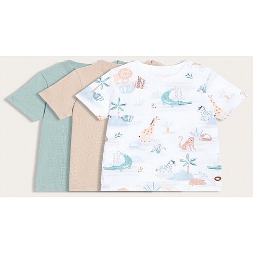 3-Pack Pure Cotton Crinkle Safari Animal Print T-Shirts in Multi White
