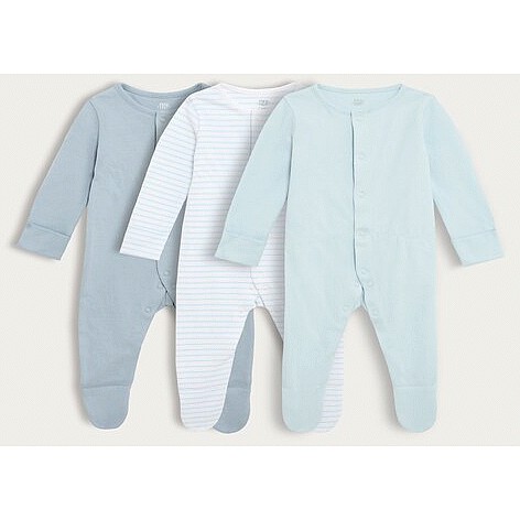 3-Pack Pure Cotton Long Sleeved Sleepsuits in Blue