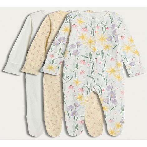 F&F Baby 3-Pack Pure Cotton Floral Print Sleepsuits in Pink