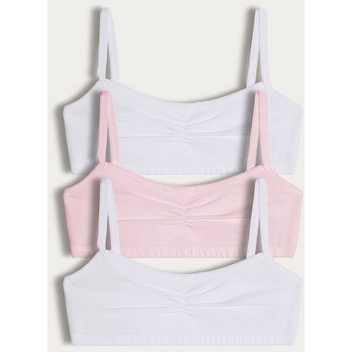 Girls 3-Pack Cotton Rich Ruched Front Crop Tops in Pink